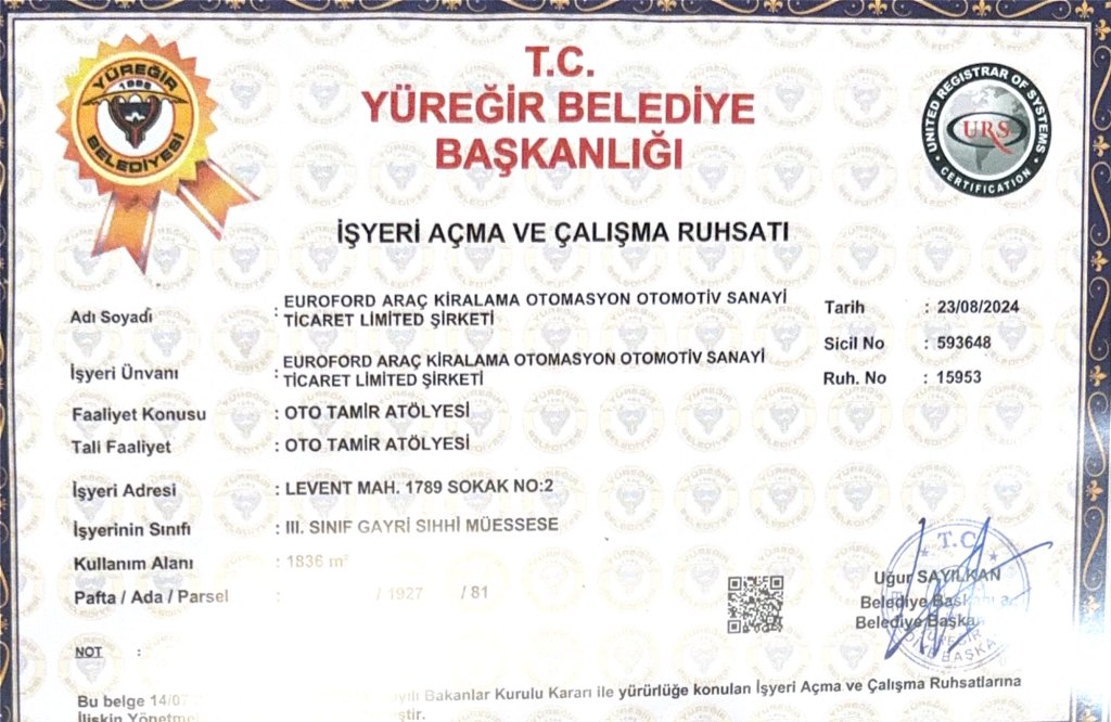 Euro Ford Adana, Ford marka araçlarınız için kaliteli, güvenilir ve profesyonel bakım ve onarım hizmetleri sunan lider bir araç servisidir. Adana'nın en güvenilir ve uzman servislerinden biri olarak, aracınızın her türlü bakımını, onarımını ve yedek parça ihtiyacını en yüksek standartlarda karşılıyoruz. Yenilikçi hizmet anlayışımız ve müşteri memnuniyetini ön planda tutan yaklaşımımızla, araç sahiplerine kesintisiz bir sürüş deneyimi sunuyoruz.